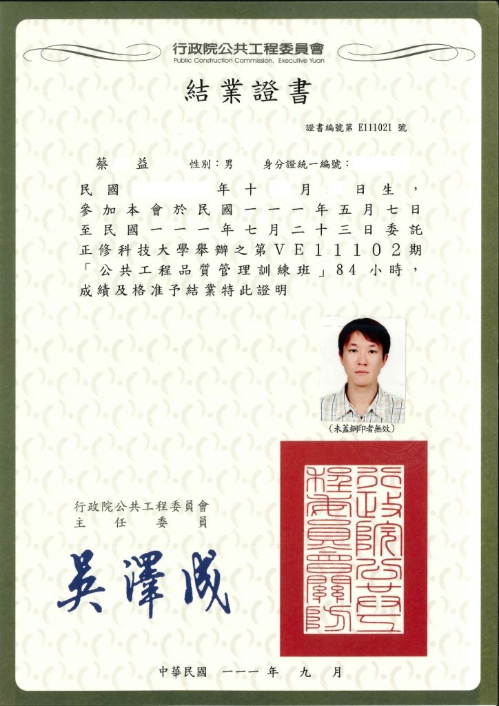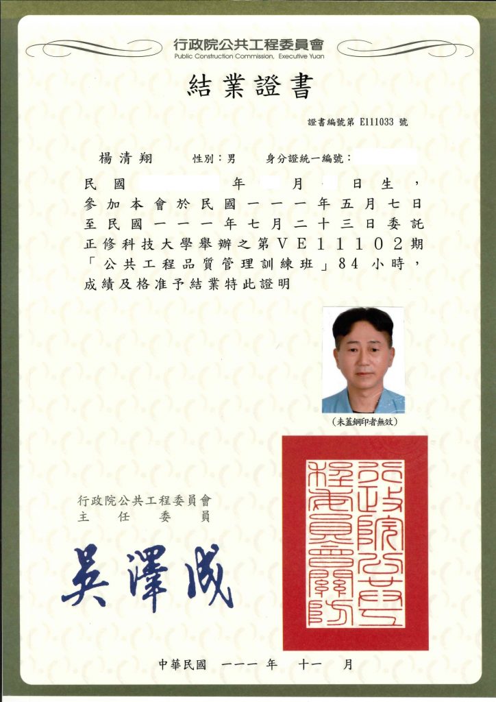 • 行政院公共工程品質管理證書