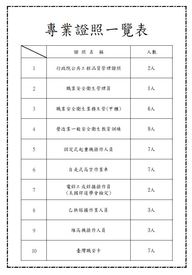 • 專業證照一覽表